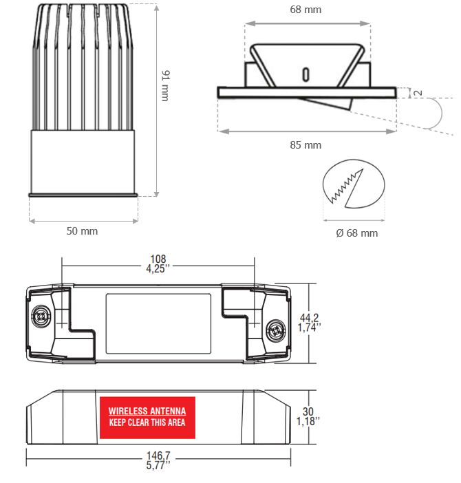 900lm CRI95 IP44 Casambi steckfertig Ø68/85mm