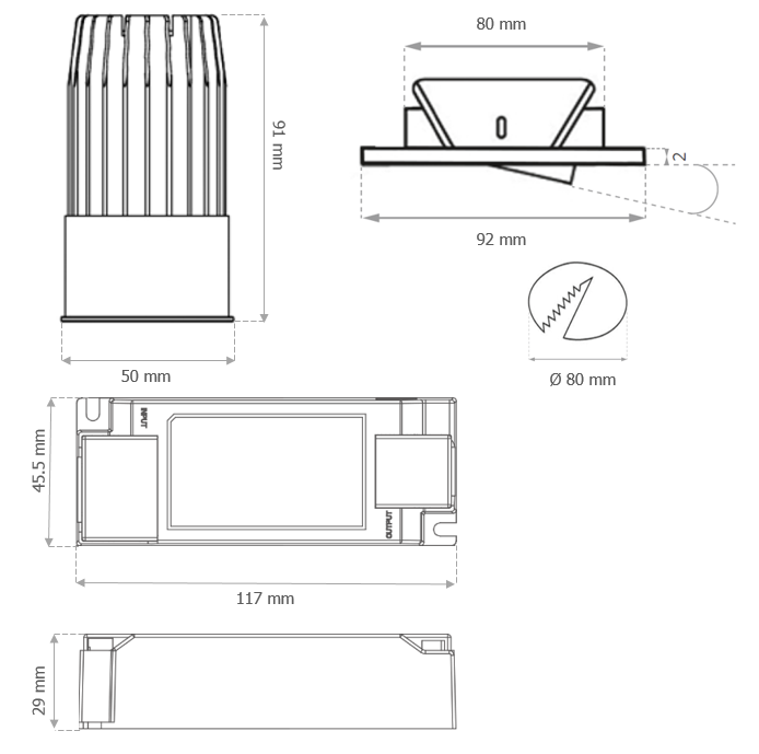 900lm CRI95 IP44 DALI steckfertig Ø80/92mm