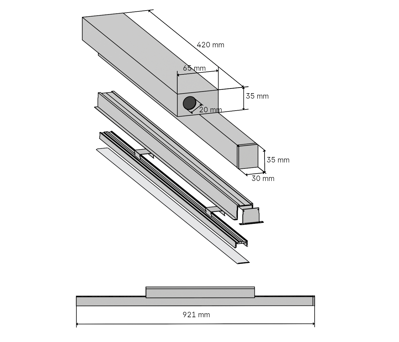 30x35x921mm 940 21W 1877lm/Leuchte